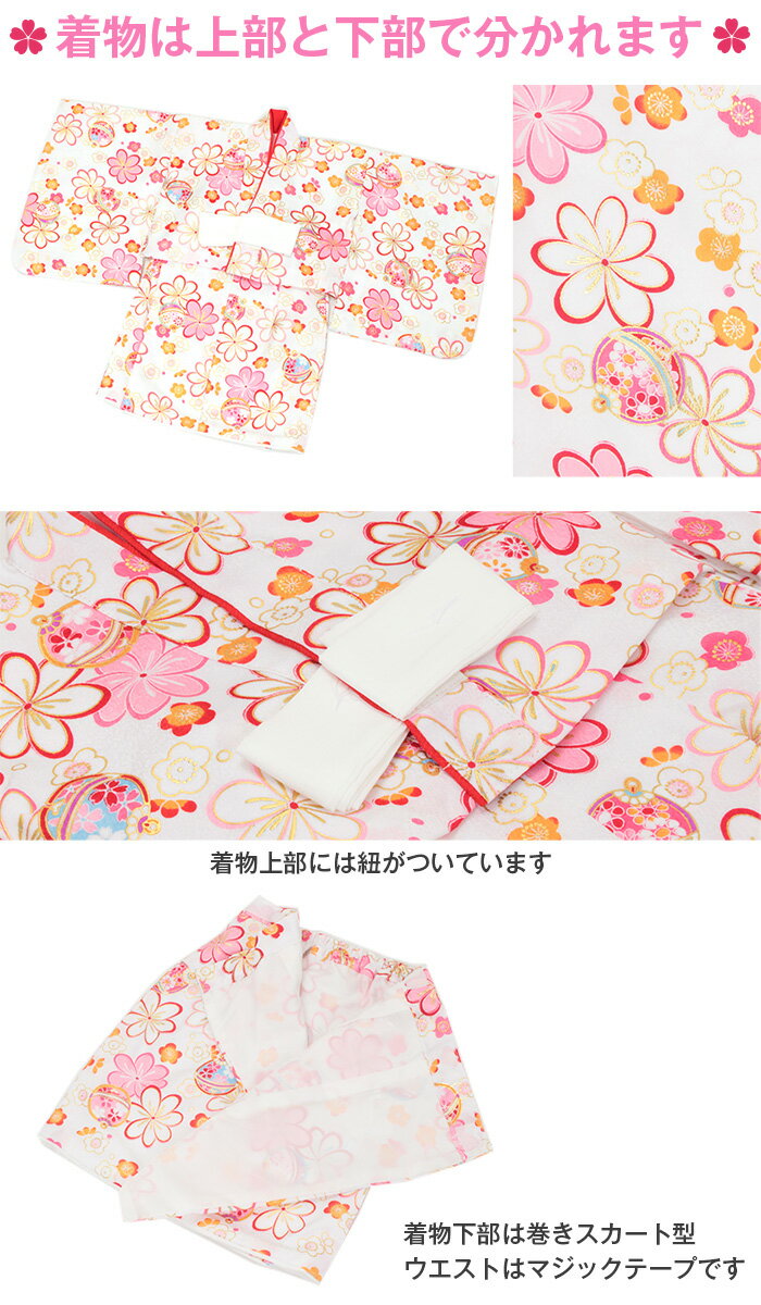 商品情報 色 ピンク・白 柄 梅 素材 ポリエステル:100% サイズ 被布丈 約32cm 着物身丈 約26cm 裄丈 約37cm 袖丈 約32cm スカート丈 約34cm ウェスト 約45cm(マジックテープで調節可能) 製造 中国製 ※商品の性質上、染料の飛びやにじみが見られる場合がございます。