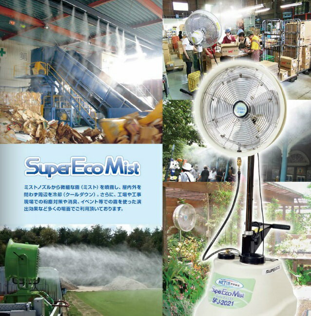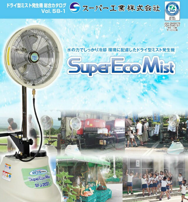 【送料無料】スーパー工業 ドライ型ミスト発生機【SFJ-2021】移動式タイプ(50Hz/60Hz 兼用)ファン取り外し可能 コンパクト収納型 工場扇 軽量 ミストファン 業務用 大型扇風機 冷風機 冷却 ミスト 涼しい風 熱中症対策に(SFJ-2020後継品)