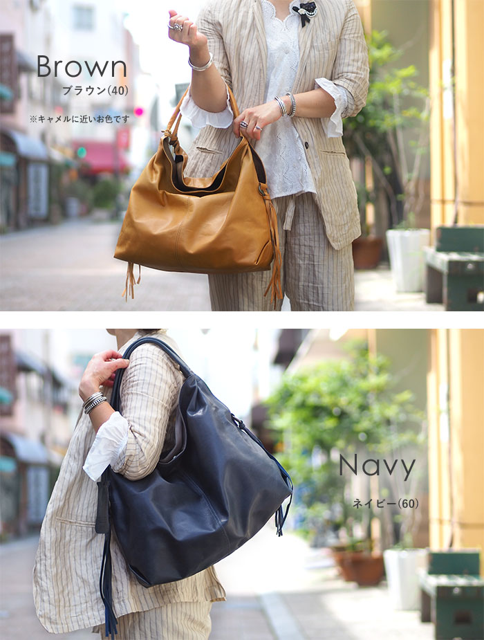 ・大容量対応の抱え持ちトート型 ・サイドスリットのおかげで開口部も広々、 上部の留めはマグネット仕様 ・A4もお弁当もペットボトルもガンガン詰め込める 余裕のサイズ感 ・背面に外ポケット配置、通勤から一泊旅行程度まで対応 素材 馬革 仕様 外/ファスナー×2 中/ファスナー×1、オープン×1、携帯×1 サイズ ・約W26×H20×D15cm ・ショルダー立ち上がり:約35〜62cm ・ショルダーの全長:最長約121cm ・ショルダー幅:約2.5cm 重量 約375g メンテナンス (注意点、ケア方法) ・雨やに濡れた際はタオルなどで拭き取り、陰干しすればOK(防水スプレー使用可能) ・使用によるキズは革クリーム&ブラッシング ・表面のホコリ汚れは消しゴムで優しく擦り落とす 素材について 天然の馬革には生きキズ、革面の擦れなどがありますが、革本来の風合いを生かす為にそれらを隠す表面加工を施しておりません。