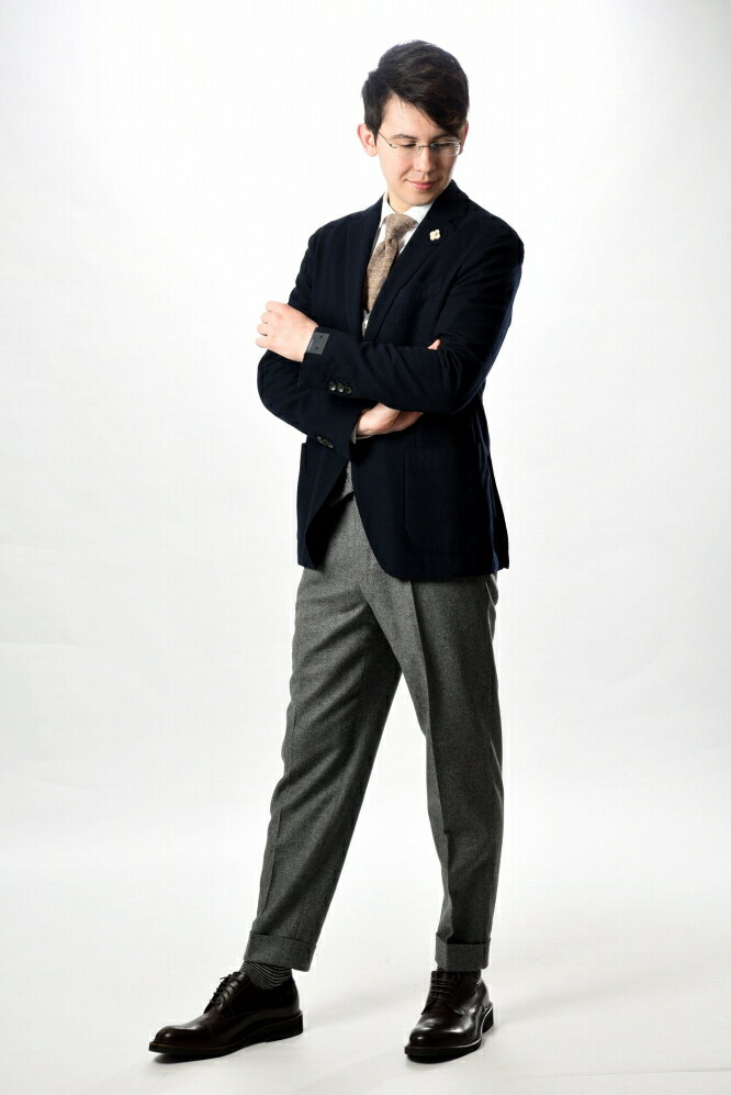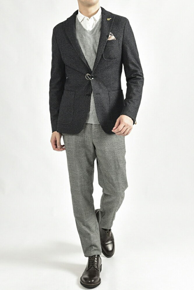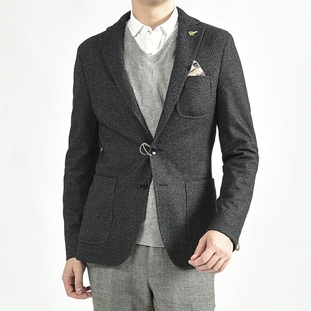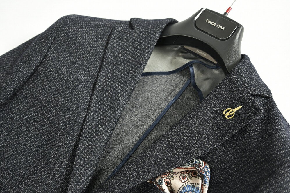 【期間限定ポイント10倍】パオローニ PAOLONI 【送料無料】テーラード ジャージ ジャケット カシミヤ混 シングル メンズ 秋冬 スリム ウール コットン ネイビー グレー 織 柄/S M L XL 2XL/イタリア ブランド SLIM