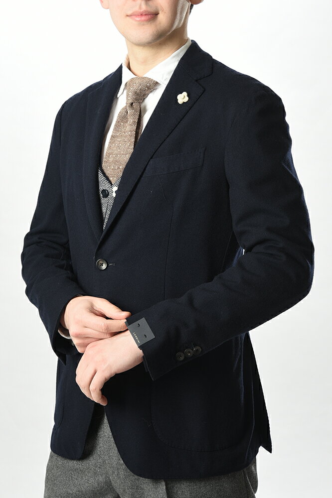 LARDINI ラルディーニ 【送料無料】テーラード ジャケット メンズ 秋 冬 シングル 2つボタン ブートニエール付き ウール カシミヤ ネイビー 紺 S M/イタリア ブランド ビジネス カジュアル イタリア製