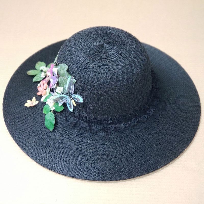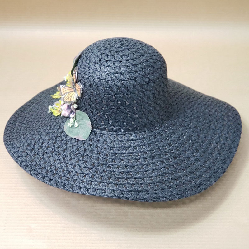 麦わら帽子 ブラック ハンドメイド デコラティブハット クラフト工房 メアリーアン 石黒直子 コレクション ガーデニング ウォーキング 紫外線予防【メール便不可・宅配便配送】